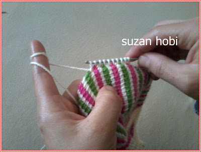 sol taraftayız, işte yine aynı şekilde 9. ilmekle 10 .ilmeği bir kesicem,